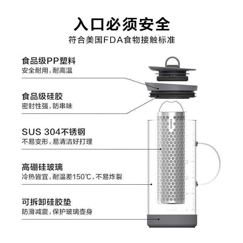 北鼎 CD2007 冷泡饮品壶 1.7L 水墨灰