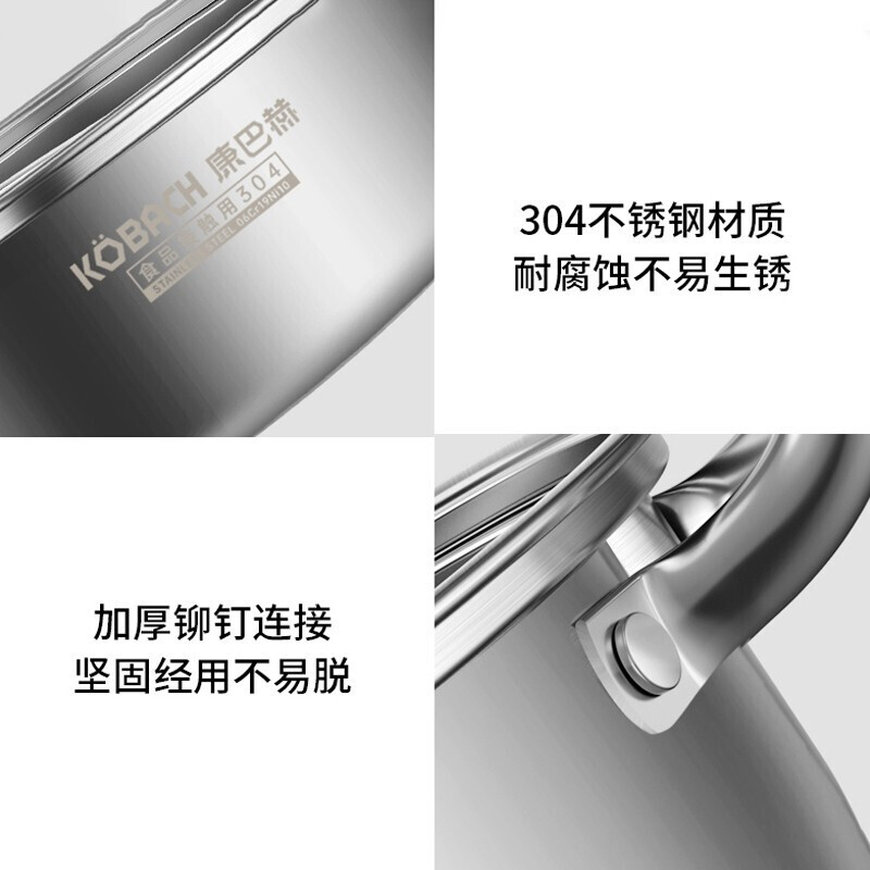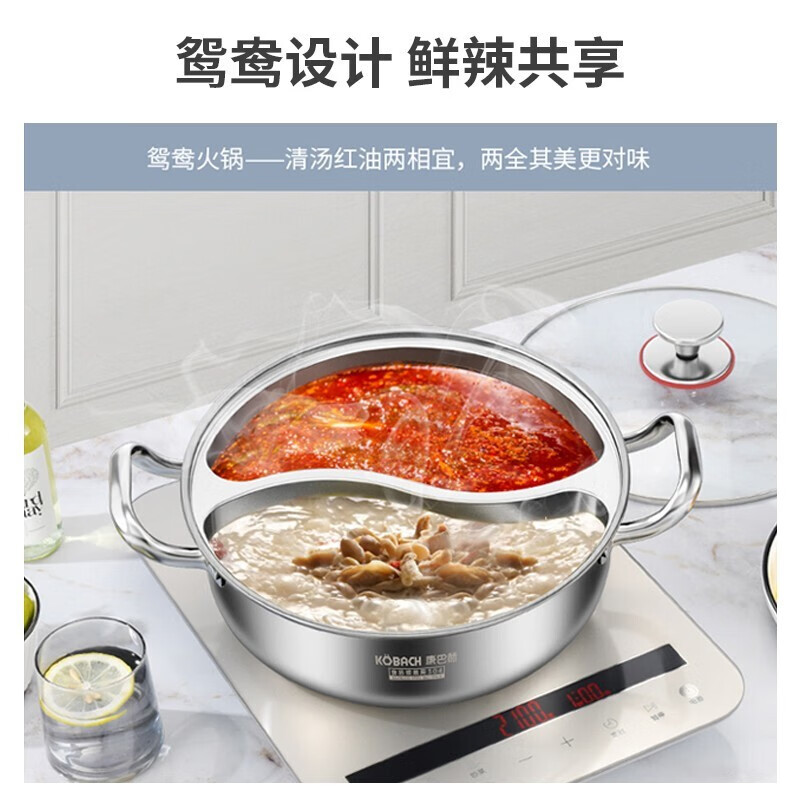 康巴赫第三代无焊接一体成型鸳鸯火锅32cm(带弯弧方柄勺、漏勺)KGT-H32