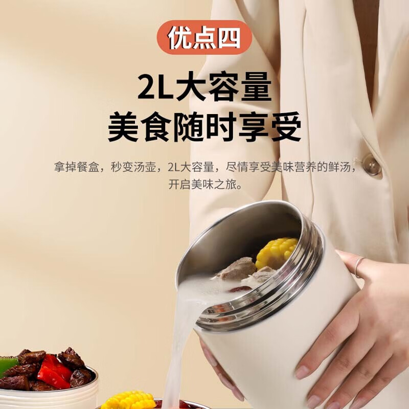 康巴赫独立舱保温不锈钢饭提2L大容量KFT-Y20L