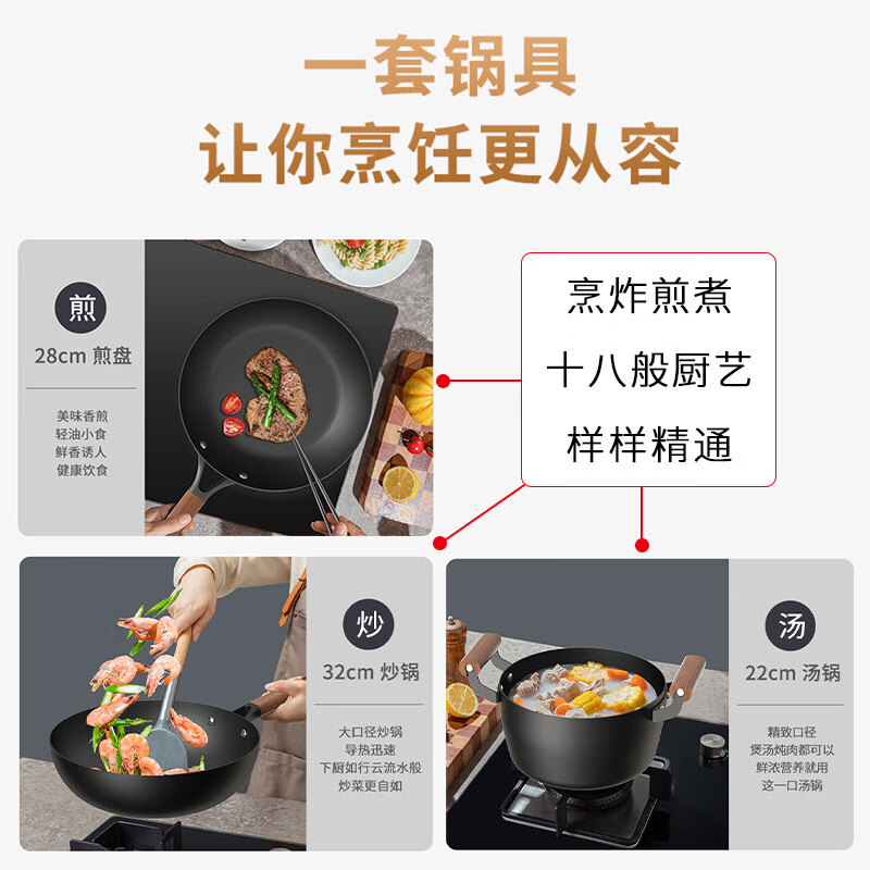 康巴赫-有钛不粘锅具三件套(32cm炒锅+26cm煎锅+22cm汤锅) LPB-W03T