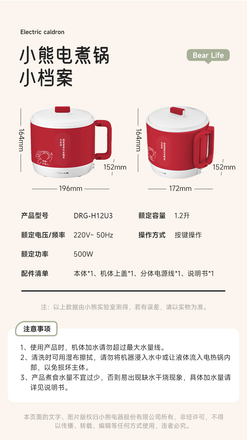 小熊电热锅DRG-H12U3