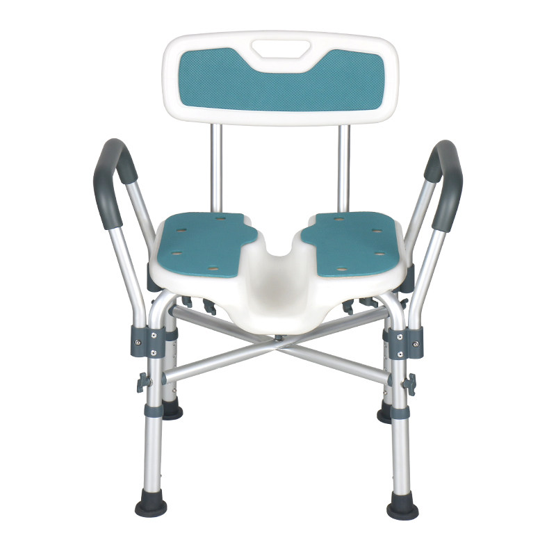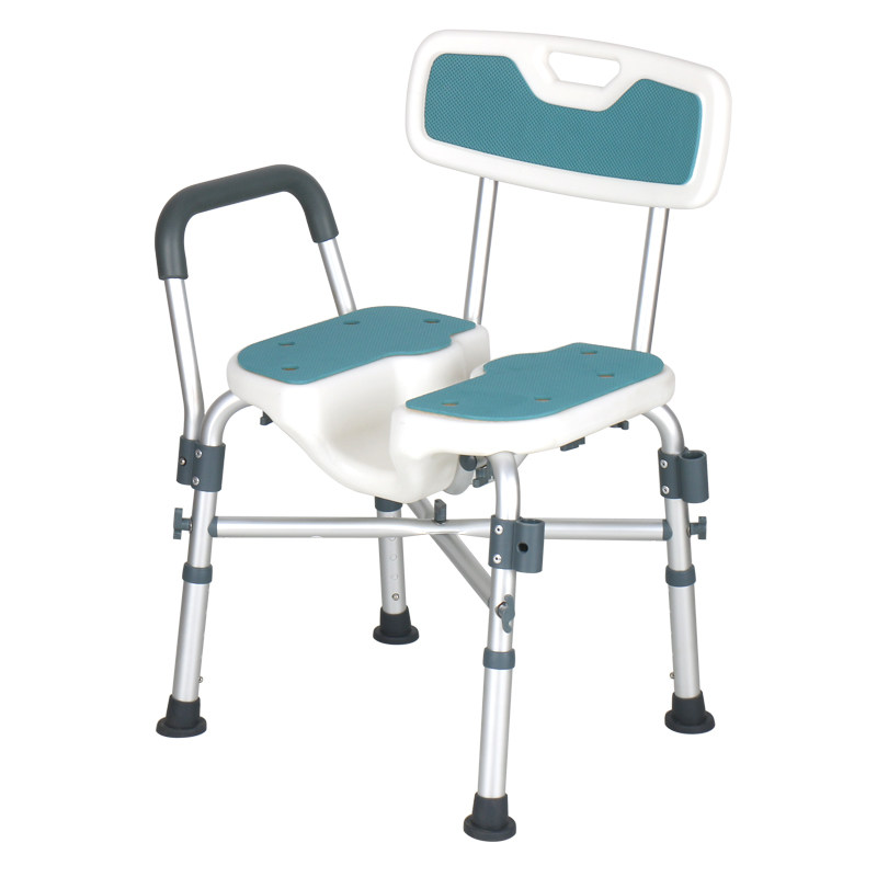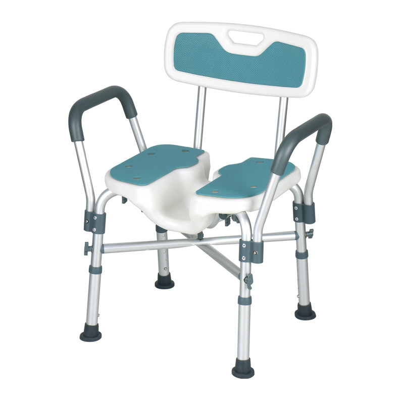 • 富士康坐便椅4542-1(U垫) 铝合金带轮折叠收合座便椅洗澡椅坐厕椅坐便椅可调高