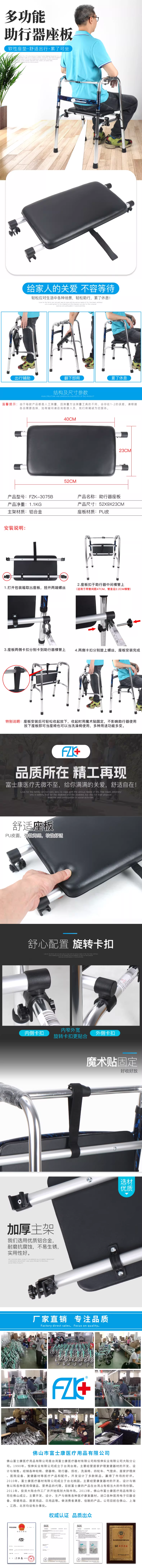 富士康黑色皮质助行器坐板 3075B