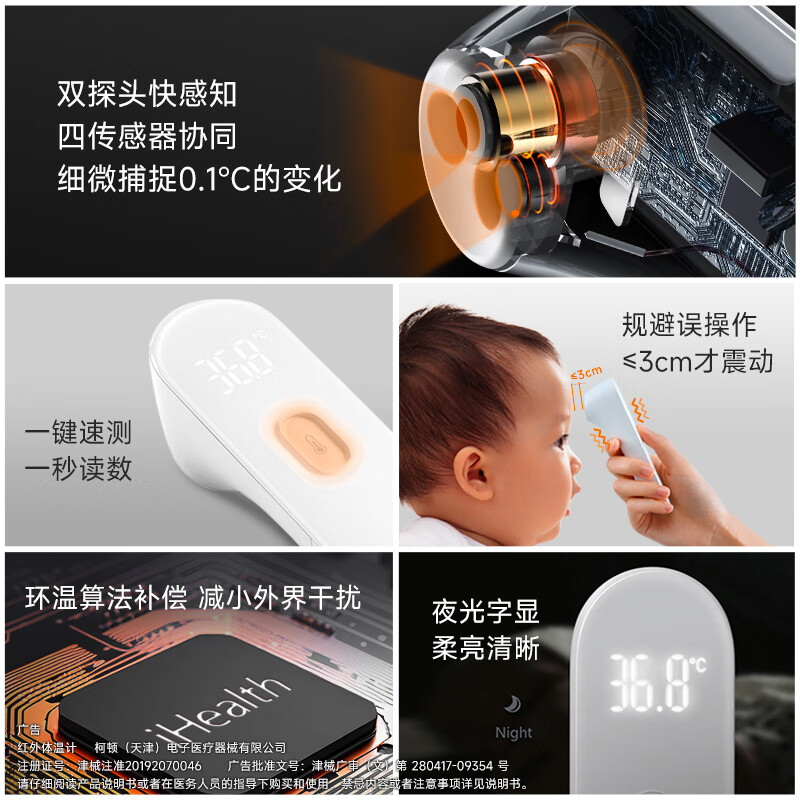 • 九安iHealth电子体温计额温枪家用红外线测额头体温表温度计PT3