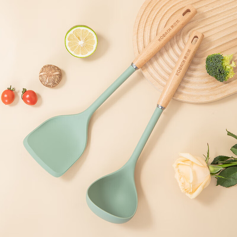 静厨防烫系列榉木硅胶勺铲两件套KSC-T02