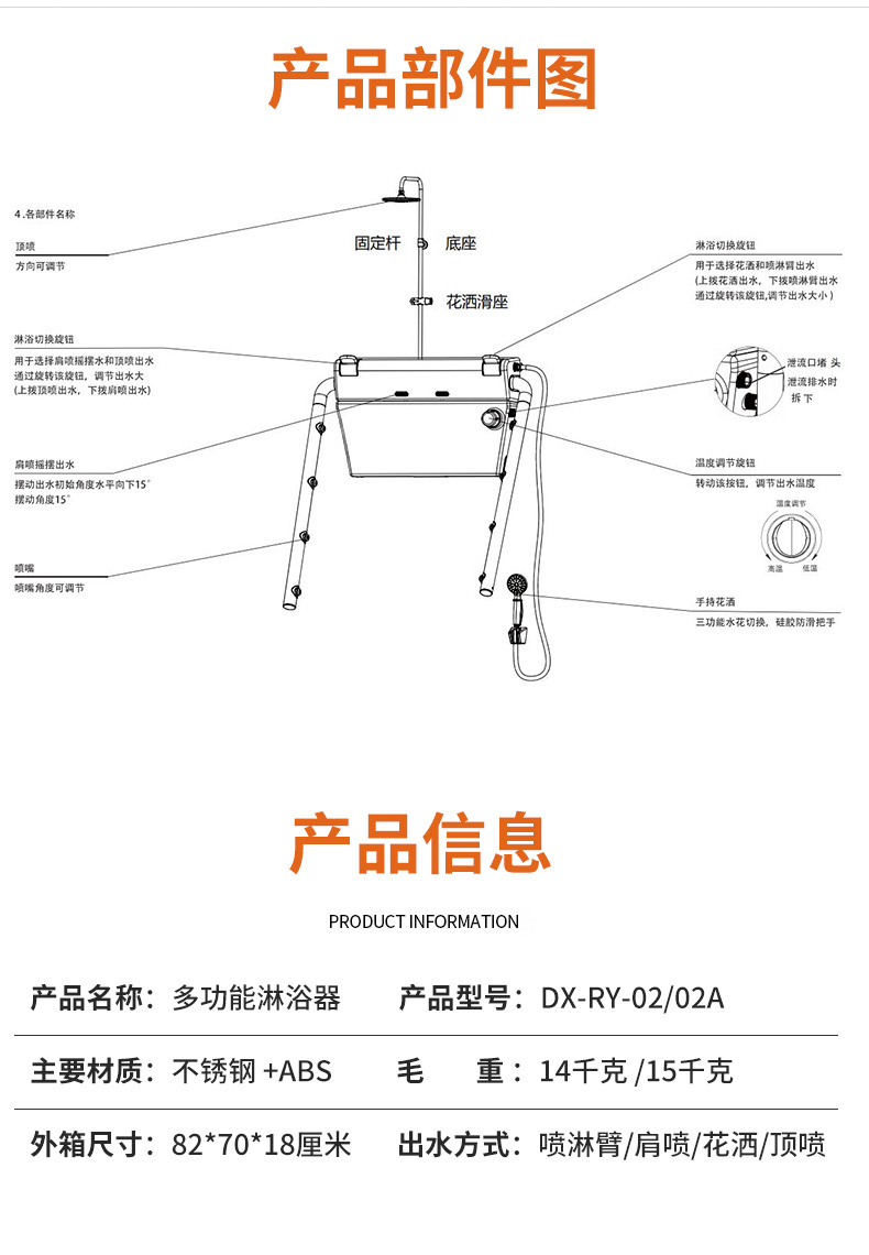 大孝 分体式多功能恒温淋浴器(带顶喷)DX-RY-202