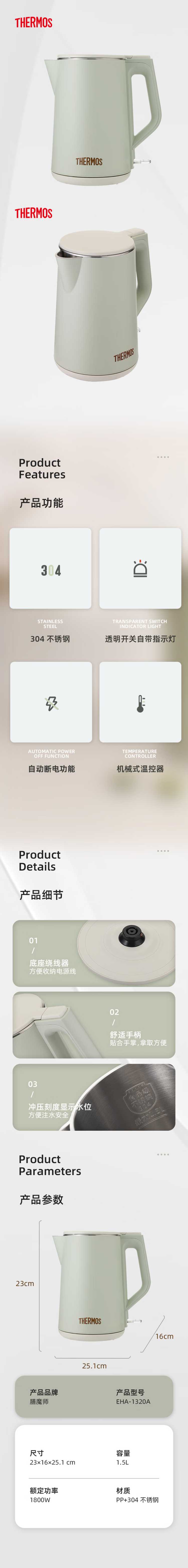 • 膳魔师电水壶奶绿色1800W EHA-1320A