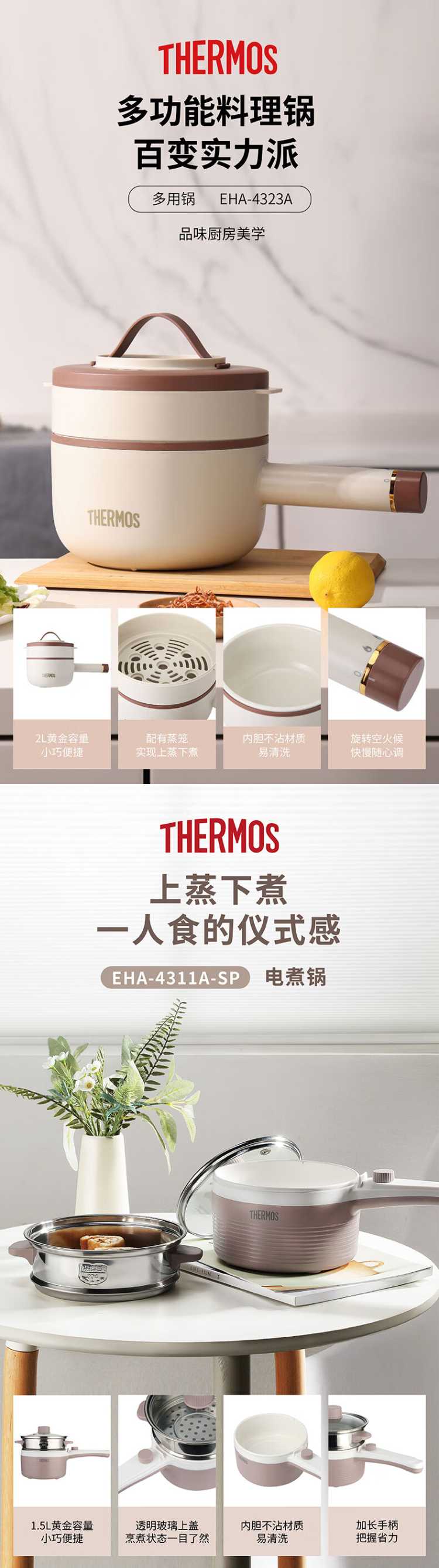 - 膳魔师电火锅奶绿色1000W EHA-4338A