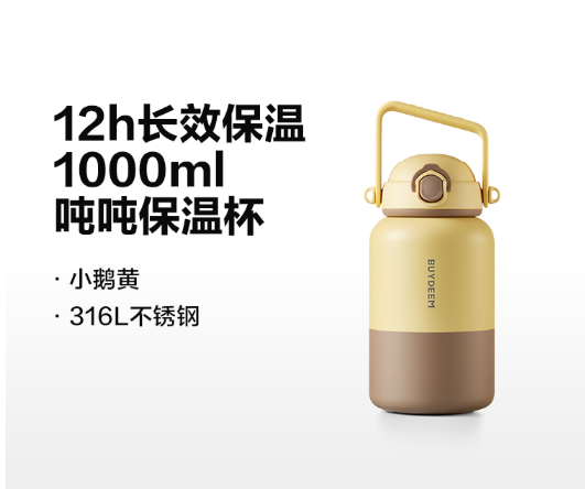 - 北鼎 S302吨吨保温杯1000ml 燕麦白+背带套餐